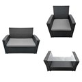 Salon de jardin comino en résine tressée noir 4 places - coussins gris