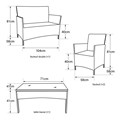 - Coussins d'assise : L 94 × l 43 × Ép. 5cm (canapé) / L 47 × l 43 × Ép. 5cm (fauteuil)