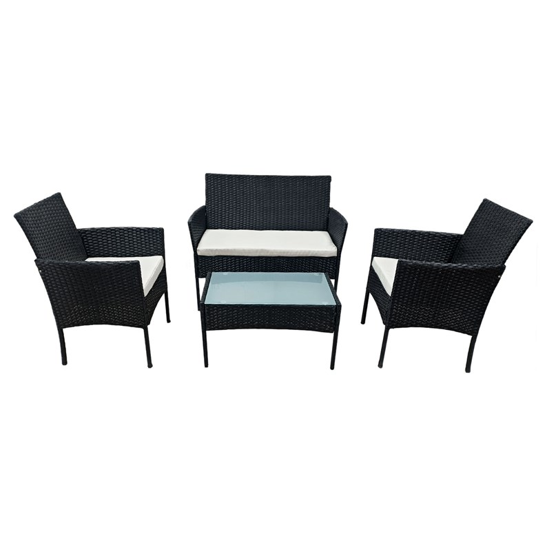 Salon de jardin corfou en résine tressée noire 4 pl. Coussins beige