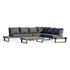 Salon de jardin d'angle ALICANTE 6 places en aluminium gris anthracite et teck FSC, composé d'une table basse et de 3 méridiennes. Coussins 100% polyester anthracite.