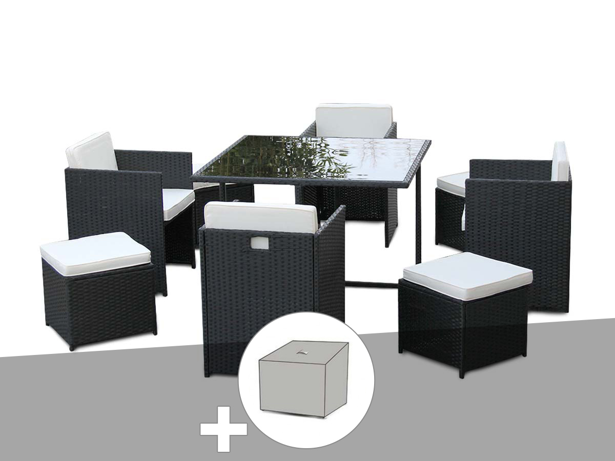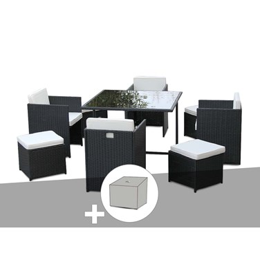 Salon de jardin en résine tressée artigas ii 4-8 places noir + housse - jardidec