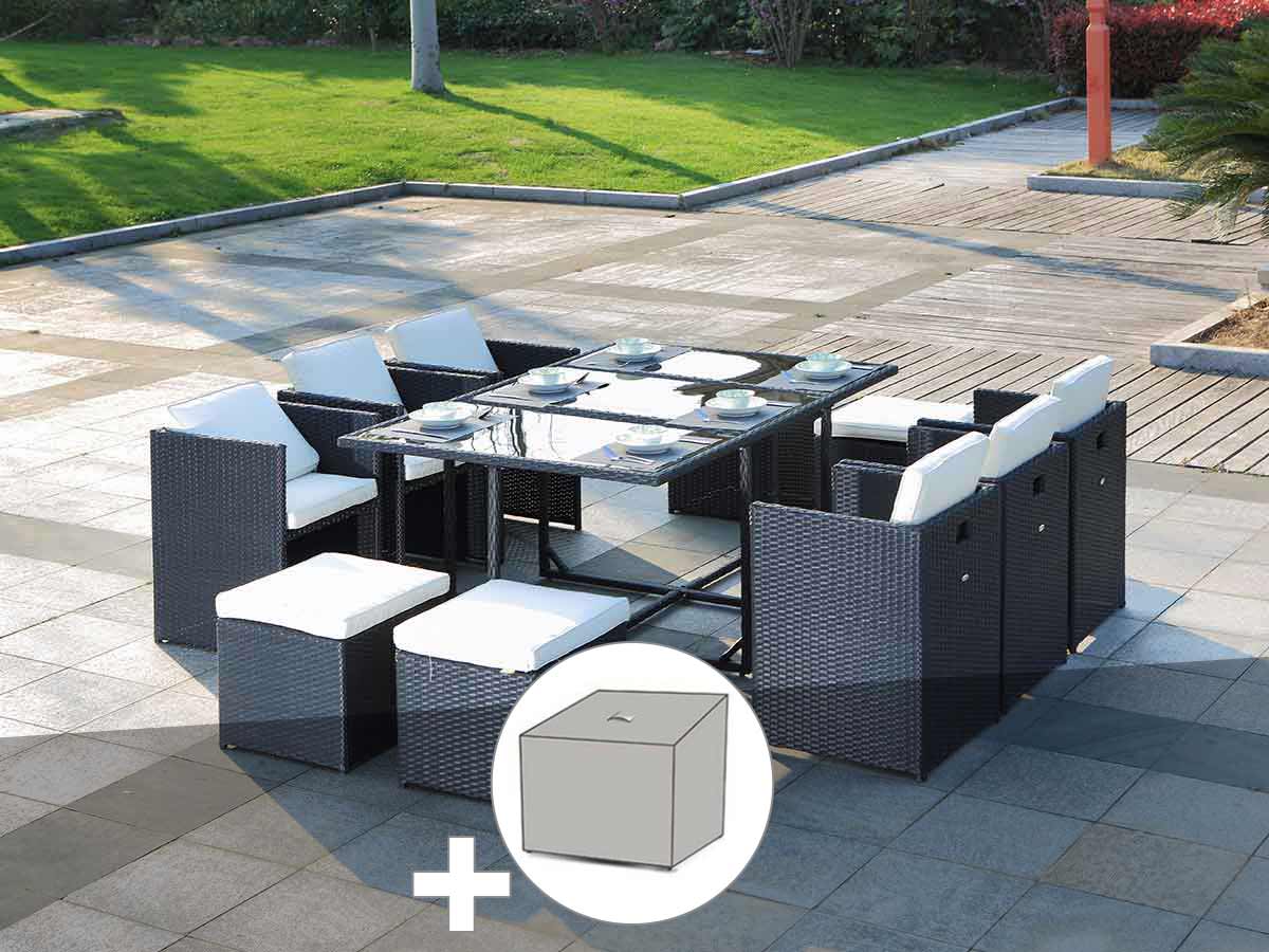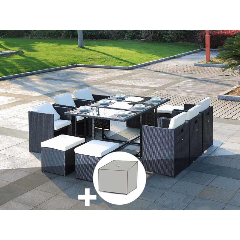 Salon de jardin en résine tressée Artigas II 6-10 places Noir + Housse - Jardide  En savoir plus