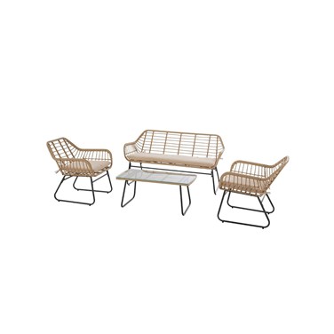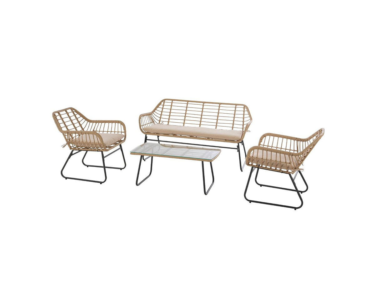 Salon de jardin en résine tressée lambada sésame avec table basse rectangulaire