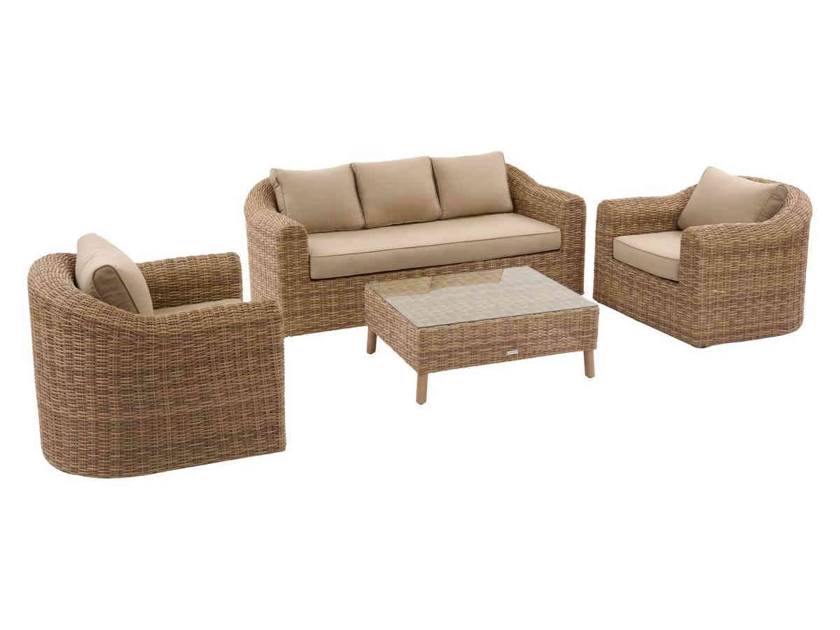 Profitez d'un espace détente confortable avec le salon de jardin Moorea Savana – 5 places. Cet ensemble comprend un canapé 3 places, deux fauteuils spacieux et une table basse assortie, idéal pour aménager une terrasse accueillante ou un coin relaxation dans le jardin. Son tressage en résine synthétique et son design aux formes douces créent une ambiance chaleureuse, parfaite pour prolonger les moments de détente en plein air.