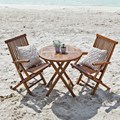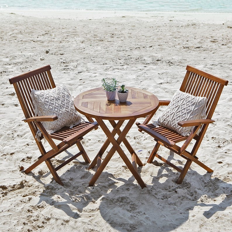 Alliez confort et tranquillité grâce à ce salon de jardin en teck huilé ! Ce salon de jardin est équipé d'une table ronde pliante et de deux fauteuils pliants en teck huilé, faciles à ranger. Idéal pour une terrasse ou un balcon, cet ensemble vous permet de passer des moments agréables en famille ou entre amis. Caractéristiques : Matière : Teck huilé - Couleur : Marron - Fauteuils : Profondeur 41 cm x Longueur 51 cm x Hauteur 90 cm - Table : Diamètre 70 cm x Hauteur 75 cm - Poids : 24 kg - Garantie : 5 ans - Montage : Pieds de la table à monter. Les + : Ensemble pliable – Visserie laiton.