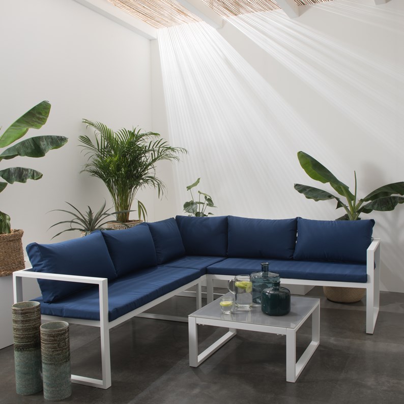 Le salon de jardin IBIZA est composé d'un canapé d'angle et d'une table basse. Le canapé qui pourra accueillir jusqu'à 4 personnes se transforme aussi en transat grâce à l'assise du coin qui se relève. La structure en aluminium résistera parfaitement aux conditions extérieures et assurera longévité à cet ensemble. Les coussins sont épais et mœlleux pour un confort optimal. L'entretien se fera facilement grâce à une éponge et de l'eau savonneuse.