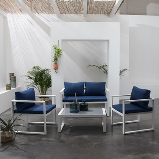 Salon de jardin ibiza en tissu bleu 4 places - aluminium blanc