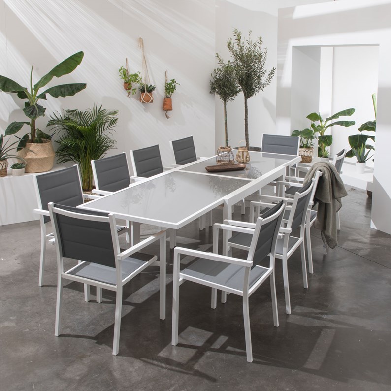 Salon de jardin lampedusa extensible textilène gris 10 places - aluminium blanc
