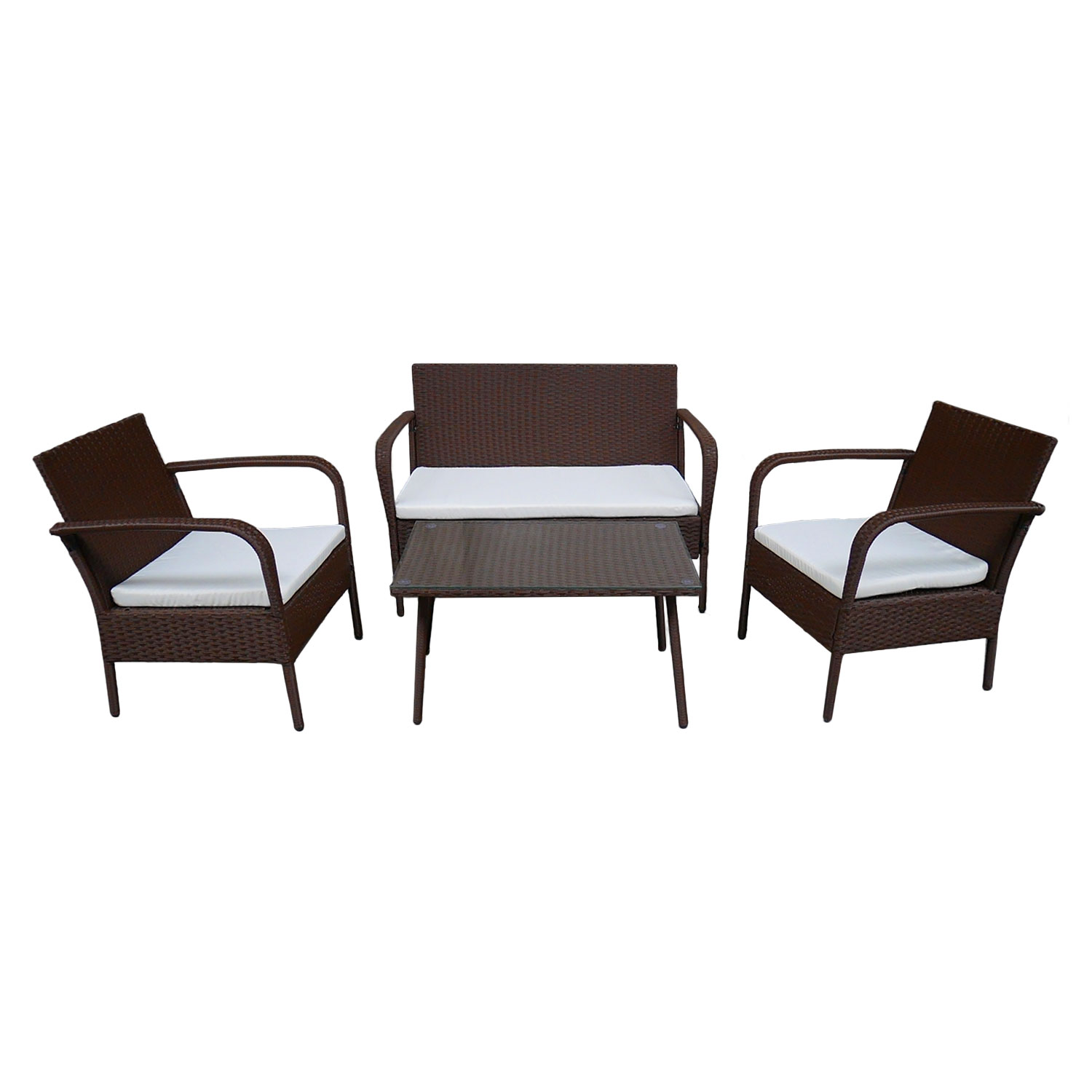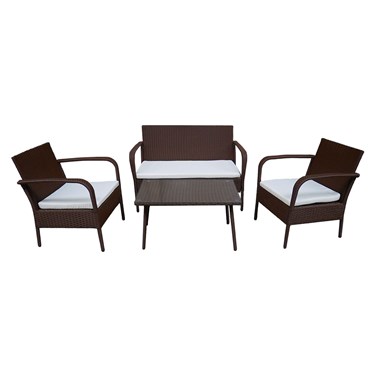 Salon de jardin lipari résine tressée marron 4 places coussins ivoire