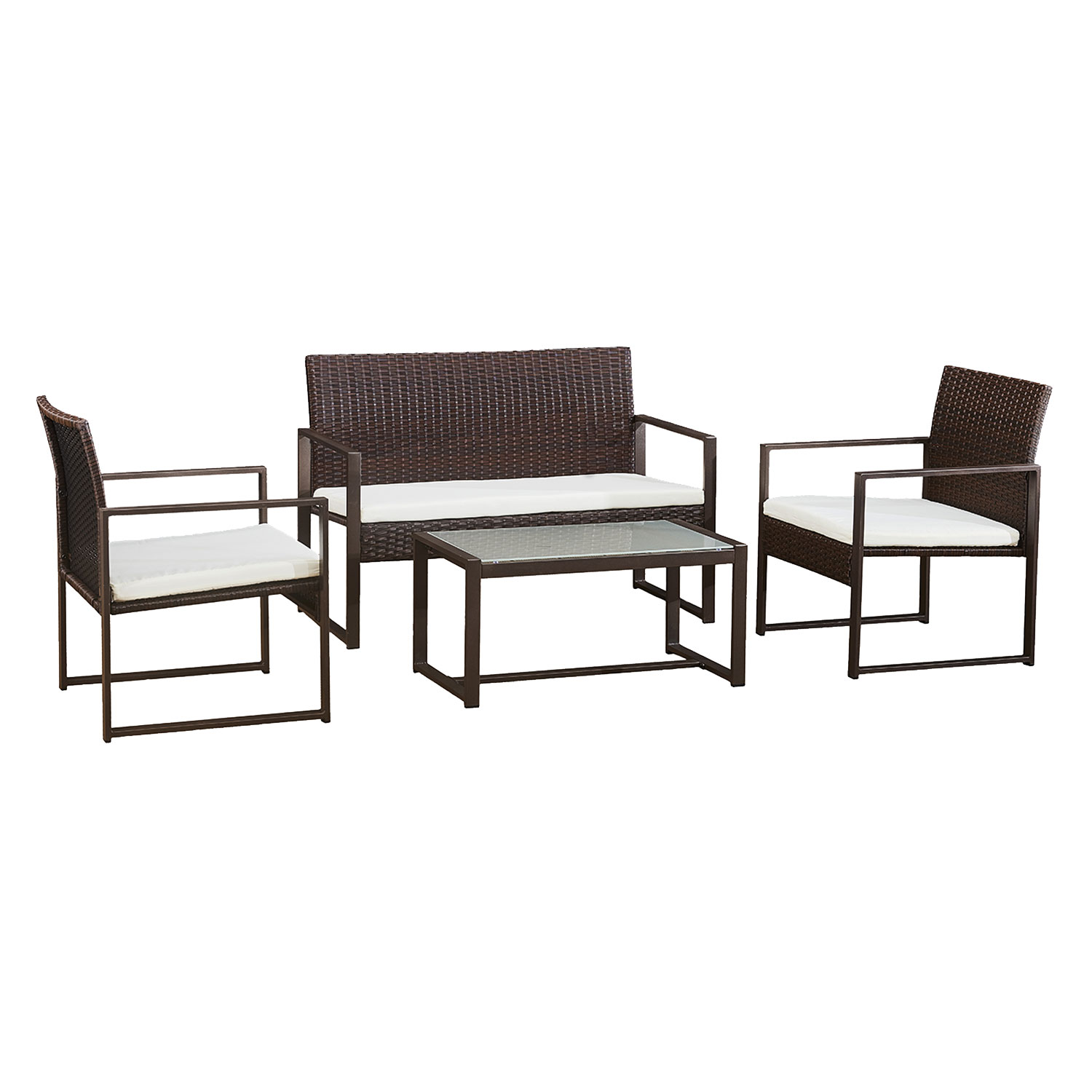 Salon de jardin majorque résine tressée marron 4 pl. Coussins ivoire