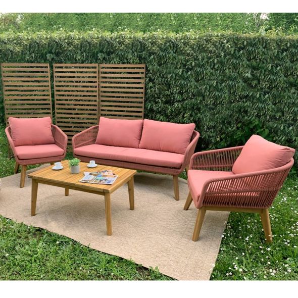 On aime le mix matière entre le bois d'acacia FSC et la corde coloris terracotta qui apporte un côté chaleureux et estival à l'ensemble.