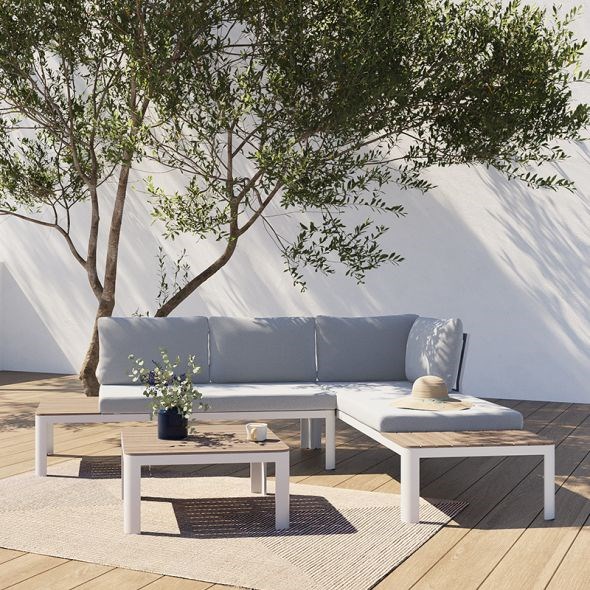 La structure en aluminium et le revêtement en polywood offrent à cet ensemble durabilité et style.