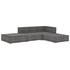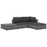 La livraison comprend 1 canapé d'angle, 1 canapé du milieu, 1 repose-pied, 1 table basse, 3 coussins d'assise et 3 coussins de dossier.