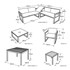 Le salon de jardin modulable IBIZA contient : 1 canapé 2 places, 1 canapé 3 places, 1 fauteuil, 2 tabourets, 1 table et 1 table basse
