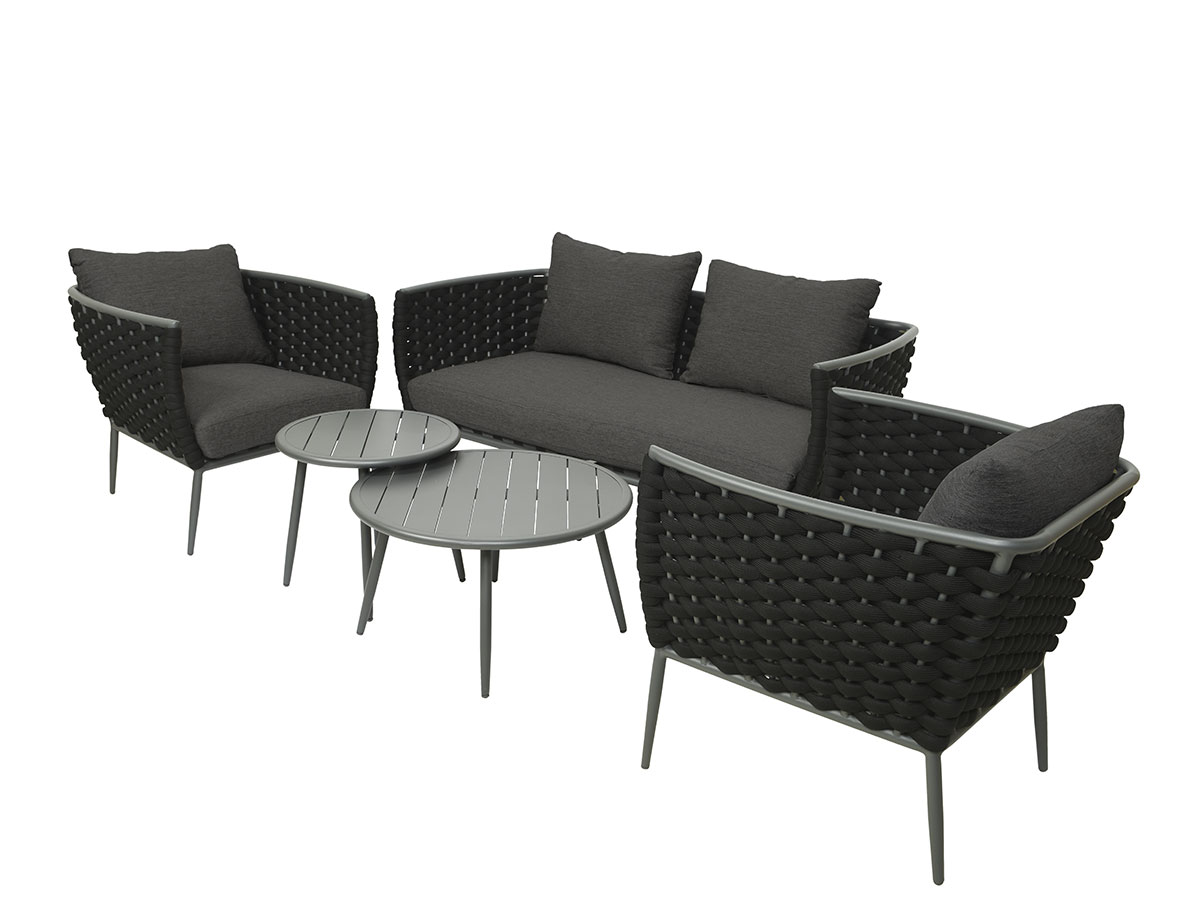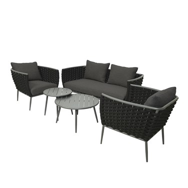 Idéal pour des petites terrasses ou des grands balcons, ce salon de jardin Monza original fera sensation auprès de vos amis. Sa structure, composée de grosses cordes noires en polyester et en aluminium, donne une touche élégante à votre extérieur.