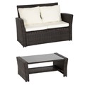Salon de jardin sintra en résine tressée marron 4 pl. Coussins crème