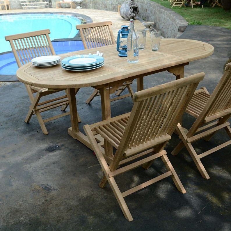 Salon de jardin en Teck massif Hawaï - Table ovale extensible Sirius de 120 / 180 x 90 cm + 4 chaises Java