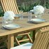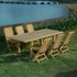 Elle est complétée par 6 élégantes chaises en teck massif Karimun au haut dossier ergonomique.