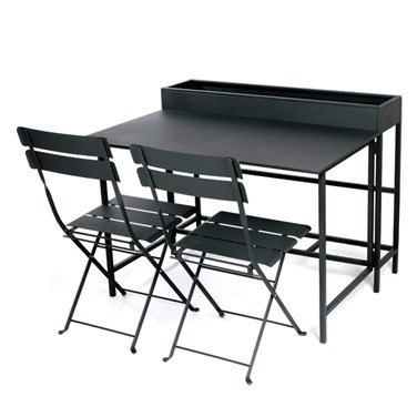 - Fabriqué en acier résistant aux intempéries, cet ensemble de mobilier d'extérieur a été spécialement conçu pour s'adapter aux petits espaces, qu'il s'agisse d'un jardin, d'une terrasse ou d'un balcon.