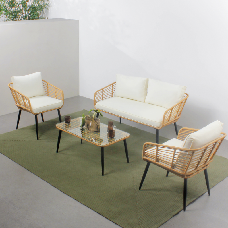Sitia salon de jardin 4 places canapé et chaises effet rotin avec coussins confo