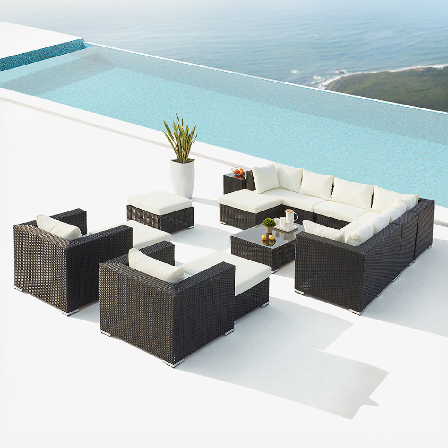 Stalla salon de jardin modulable 13-14 places en résine tressée noir et blanc