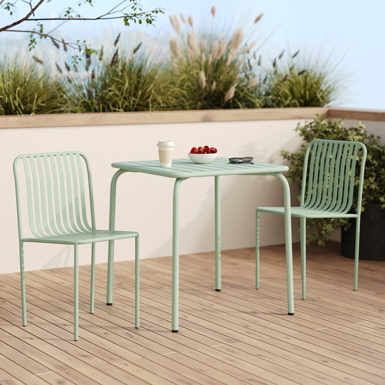 Table et chaises de jardin en métal vert 2 personnes - yumi