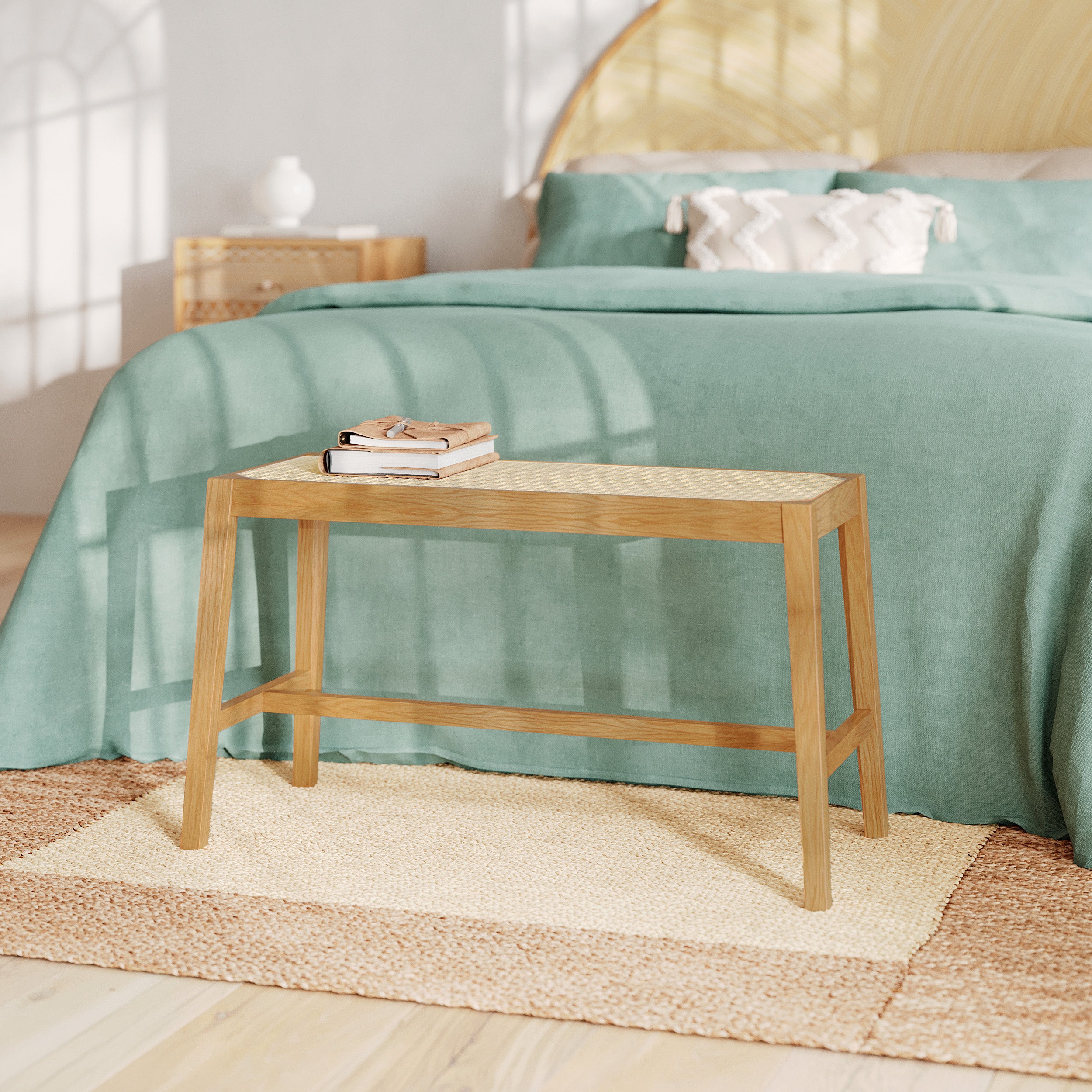 Banc 2 places en bois de chêne massif et cannage - kappa
