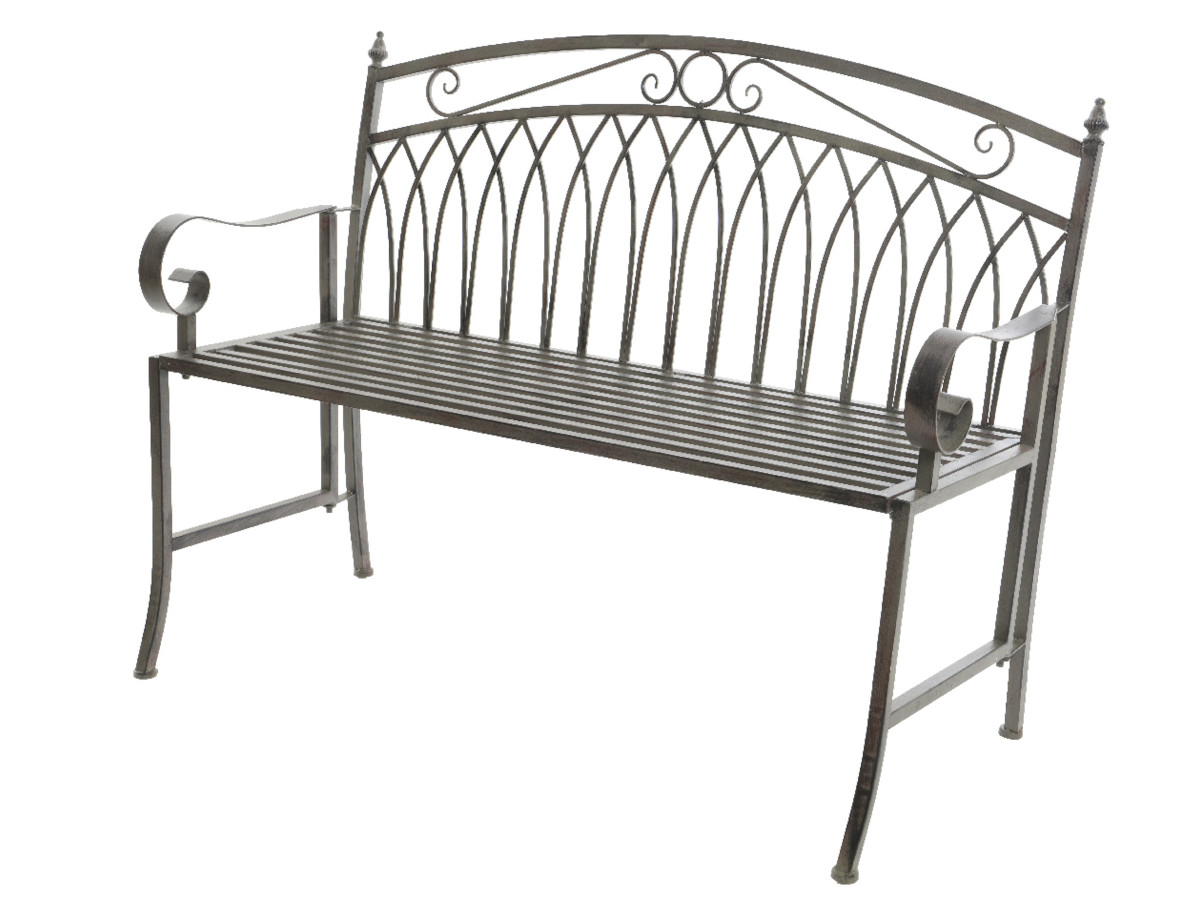 Banc de jardin en métal. Coloris : Gris. Dimensions : 118 x 45 x 88 cm.