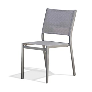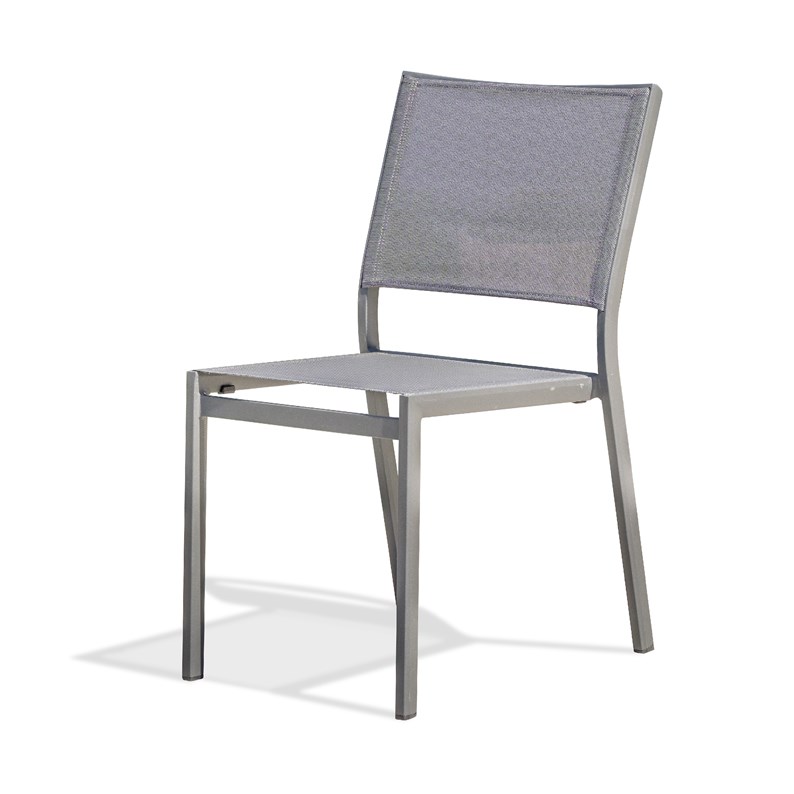 Chaise de jardin STOCKHOLM empilable en aluminium gris anthracite et toile plastifiée gris anthracite.