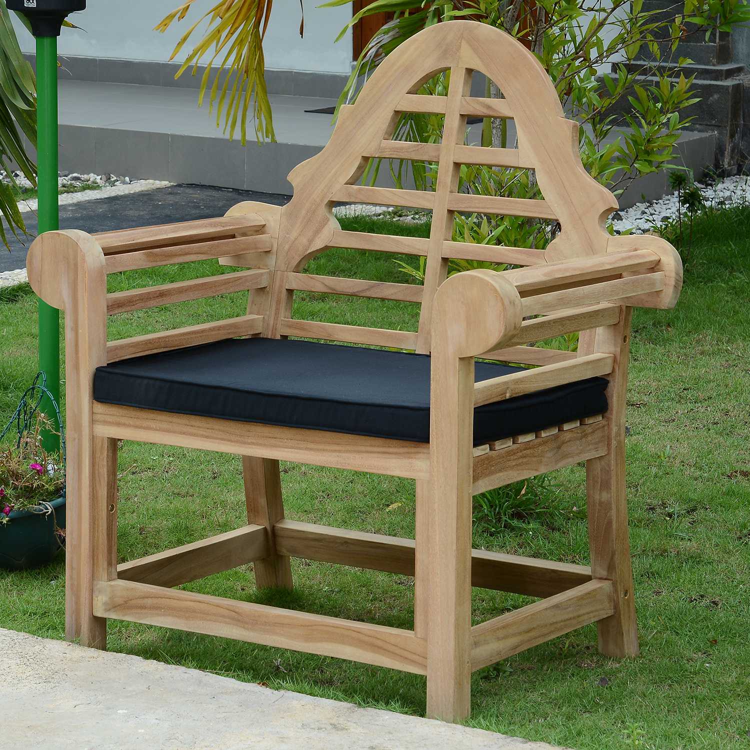 Ajoutez ce coussin noir à votre fauteuil Marlborough pour le rendre encore plus confortable et apporter une note colorée au jardin.