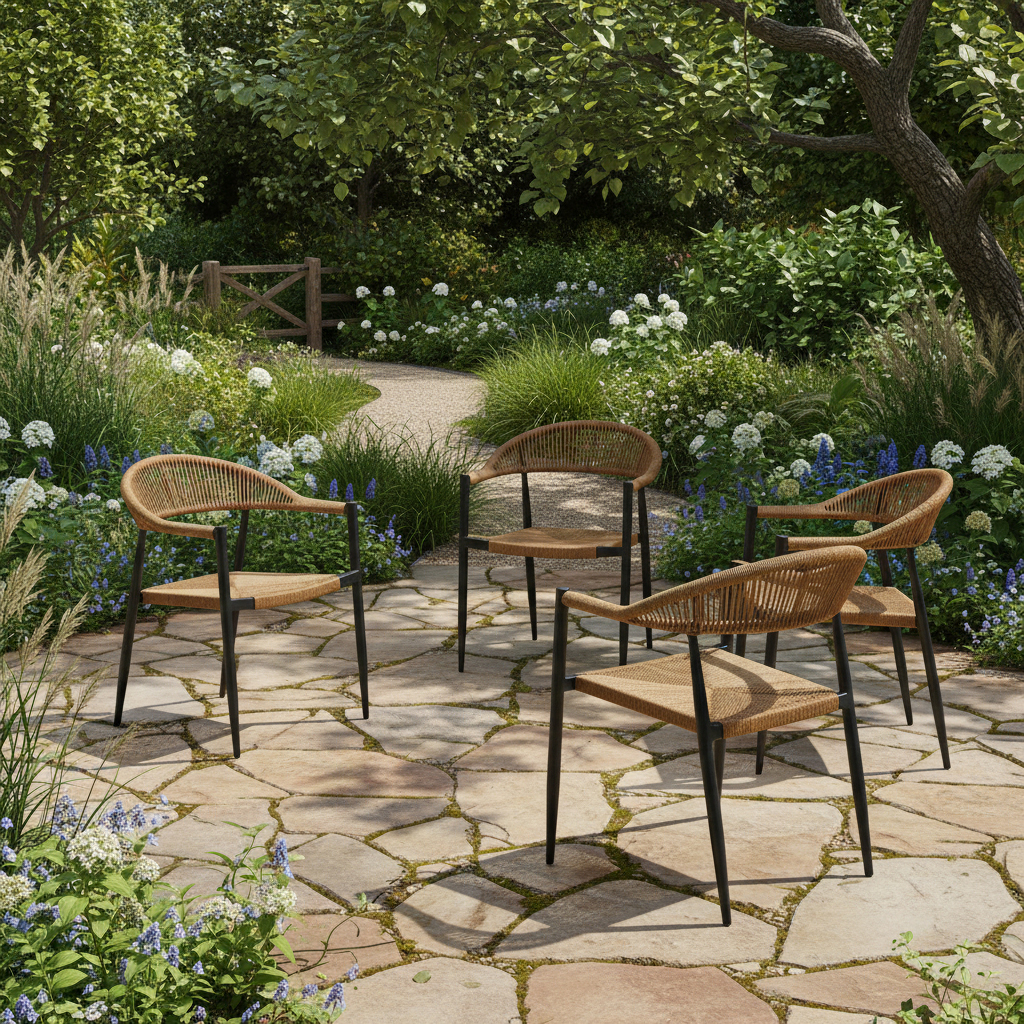 Lot de 4 fauteuils en alu et corde tressée coloris naturel Casamance