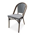 Fauteuil de jardin BISTRO en aluminium effet bois et textilène de couleur bleu et blanc.
