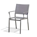 Fauteuil de jardin STOCKHOLM empilable en aluminium gris anthracite et toile plastifiée grise.