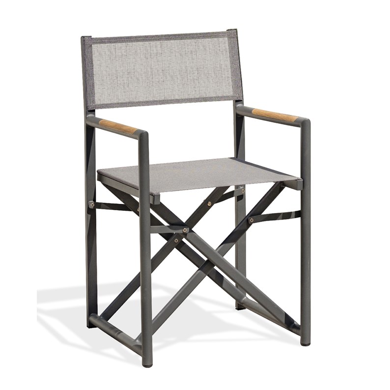 Director chair HONFLEUR pliant en toile plastifiée, structure aluminium et accoudoirs HPL.