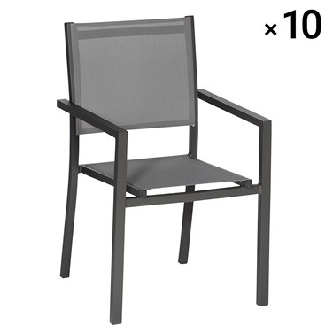 Lot de 10 chaises en aluminium anthracite - textilène gris