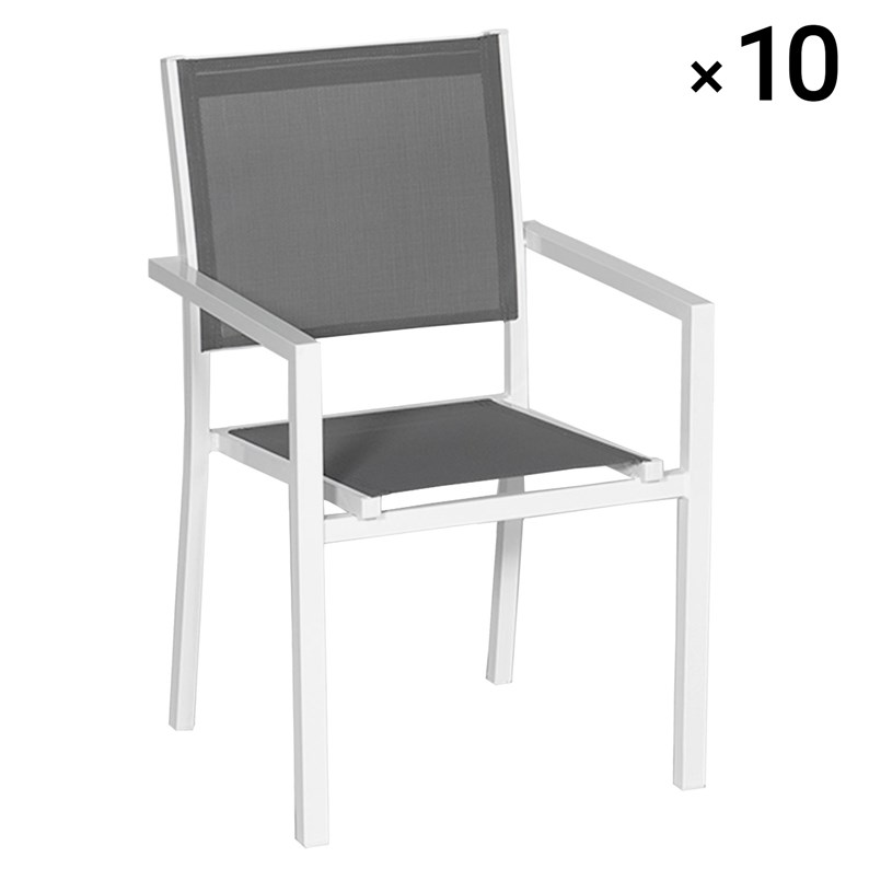 Lot de 10 chaises en aluminium blanc - textilène gris