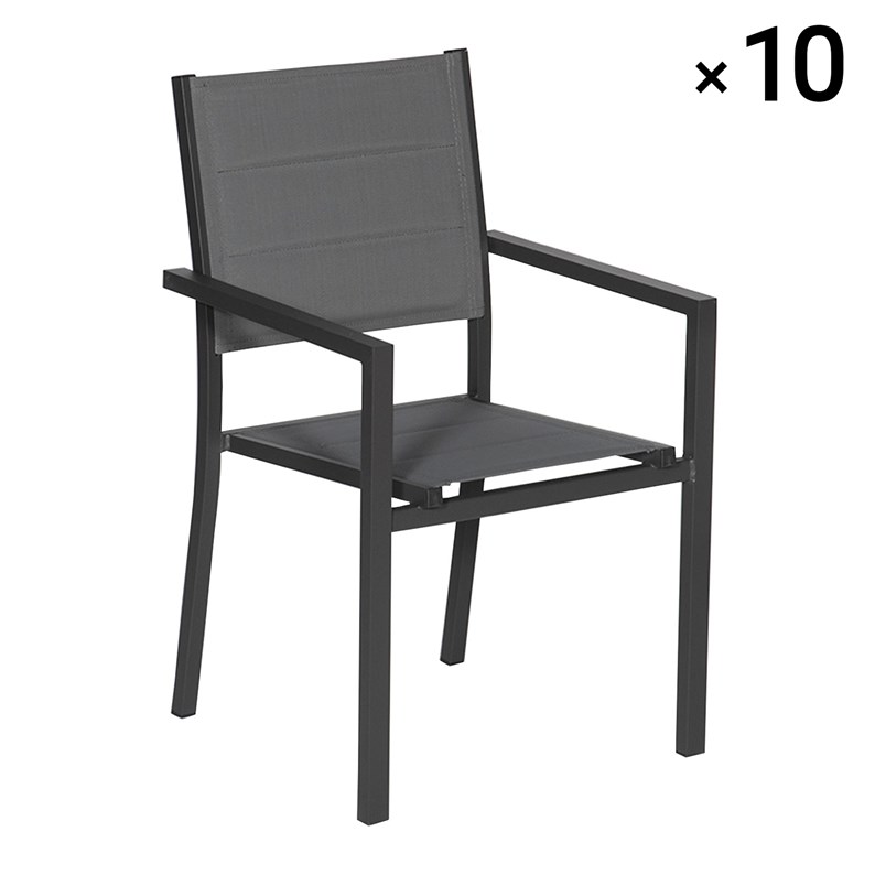 Lot de 10 chaises rembourrées en aluminium anthracite - textilène gris