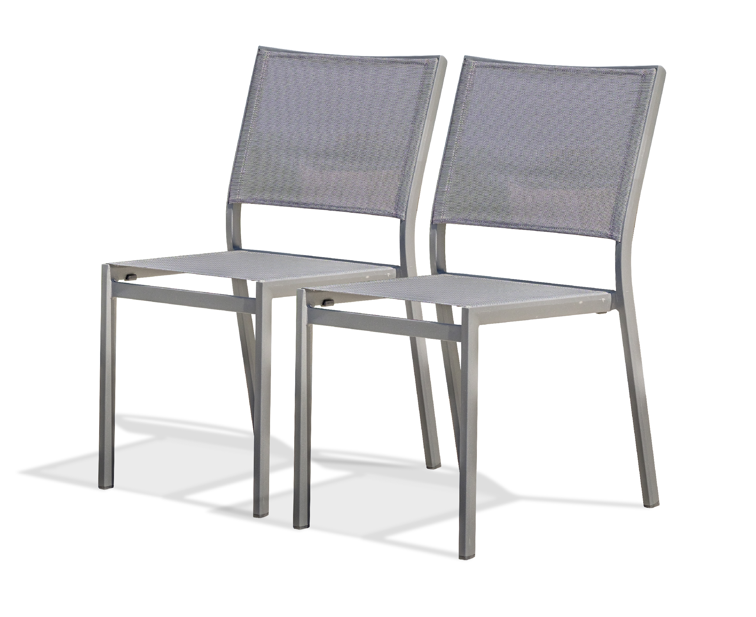 Lot de 2 chaises de jardin STOCKHOLM empilables en aluminium gris anthracite et toile plastifiée gris anthracite.