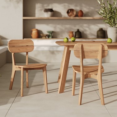 Hauteur d’assise : 44.5 cmAssise : 45 x 45 cmMatière : Chaise en bois de teck recyclé.Ce bois recyclé peut présenter des aspérités liées à son histoire, que nous réparons par empiècement ou collage afin de le revaloriser. Nous veillons à rendre ces réparations aussi discrètes que possible.Infos complémentaires : Poids max supporté : 120 KgLa couleur du bois peut varier selon chaque produit en raison des singularités de chaque planche (nœuds, coupe, séchage...).Montage : Aucun montagePoids produit : 8kgEntretien : Chaque meuble bénéficie d’un traitement renforcé contre l’humidité, les UV et l’usure pour une meilleure durabilité. Pour préserver son éclat, un entretien annuel est recommandé : ponçage, dépoussiérage et application d’huile terrasse dès qu’il commence à grisailler.Hors saison, couvrez-le tout en assurant une bonne circulation d’air.Information colis : 50 x 78 x 94 cmRecyclabilité : Totalement recyclable