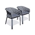 Lot de 2 fauteuils de jardin CAMARGUE en corde grise et structure aluminium gris anthracite. Coussins déhoussables en toile 100% polyester gris anthracite.