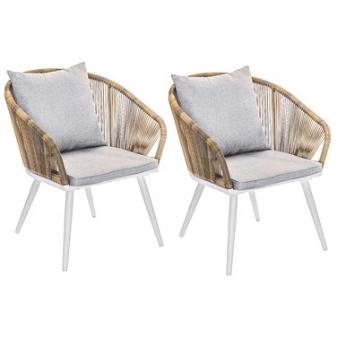 Lot de 2 Fauteuil de jardin en résine tressée structure alu blanc + coussin chin  En savoir plus