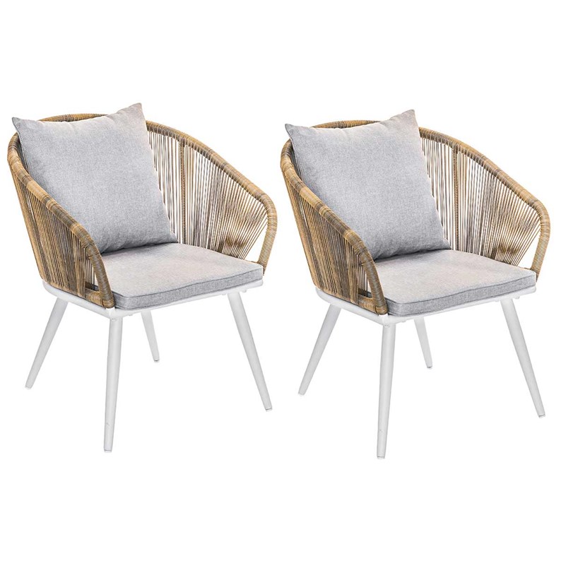 Lot de 2 fauteuil de jardin en résine tressée structure alu blanc + coussin chin