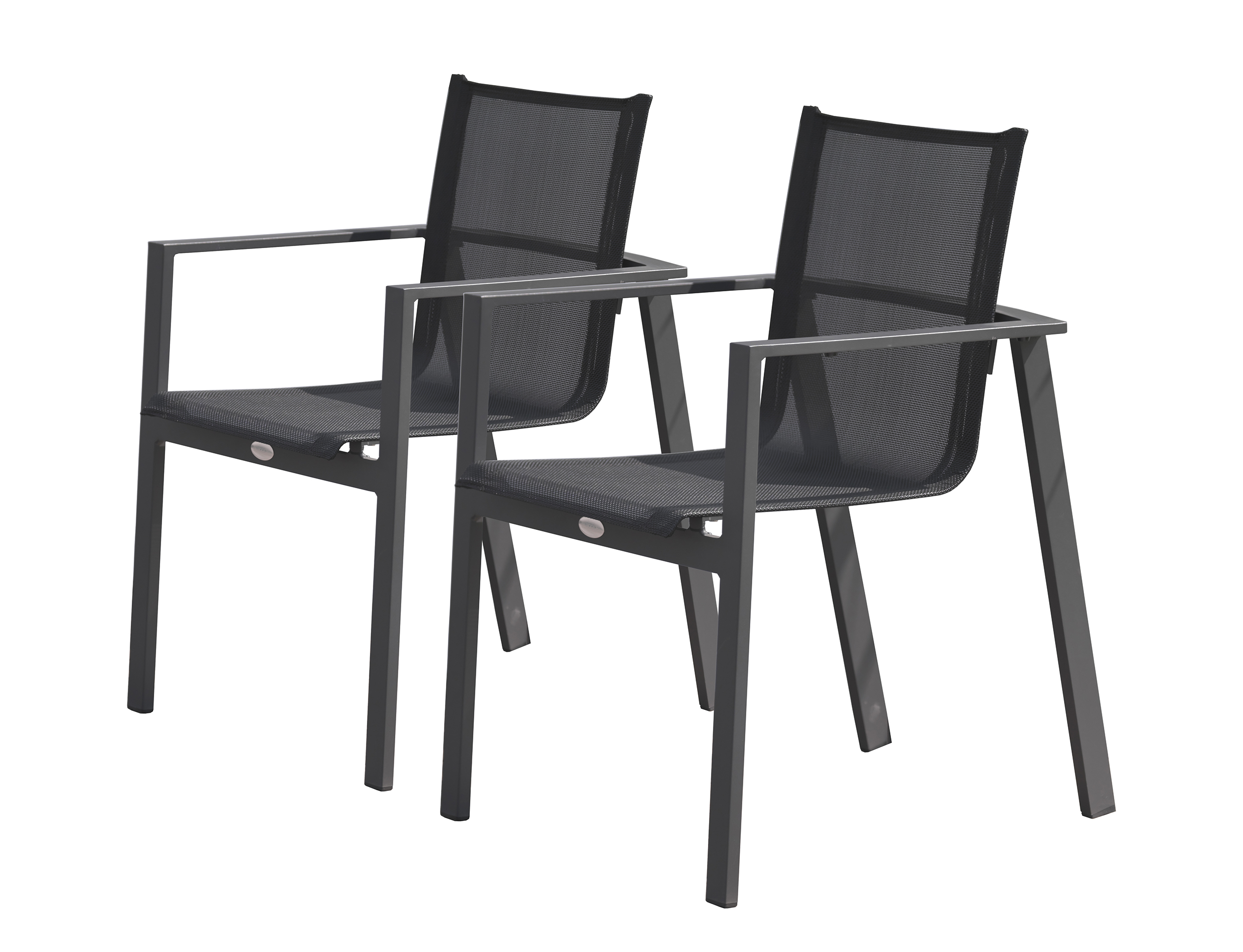 Lot de 2 fauteuils de jardin ALU-MIAMI empilables en toile plastifiée et aluminium.