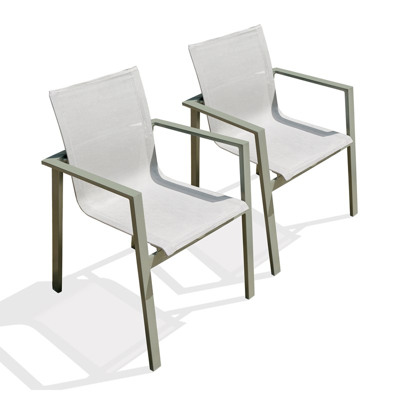 Lot de 2 fauteuils de jardin empilables en alu et toilee