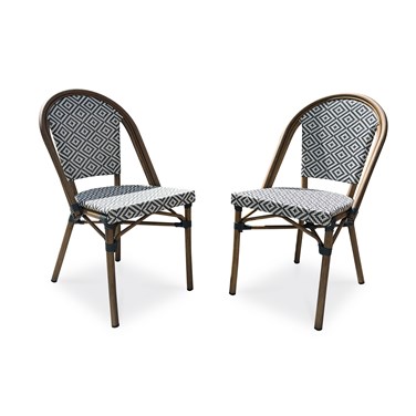 Lot de 2 fauteuils de jardin BISTRO en aluminium effet bois et textilène de couleur bleu et blanc.
