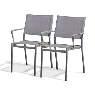 Lot de 2 fauteuils de jardin STOCKHOLM empilables en aluminium gris anthracite et toile plastifiée grise.