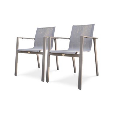 Lot de 2 fauteuils de jardin ALU-MIAMI empilables en toile plastifiée et aluminium.