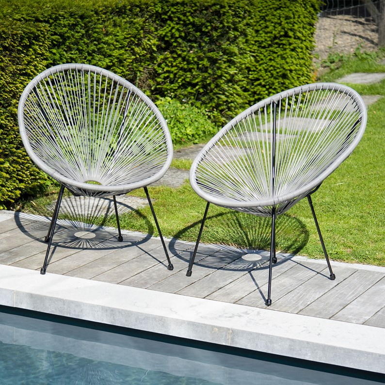 La structure grise et le design actuel de ces fauteuils donneront à votre environnement un rendu très moderne qui vous permettra de les installer aussi bien à l'intérieur qu'à l'extérieur. Pour une ambiance plus cosy, n'hésitez pas à les compléter avec de jolis coussins moelleux.