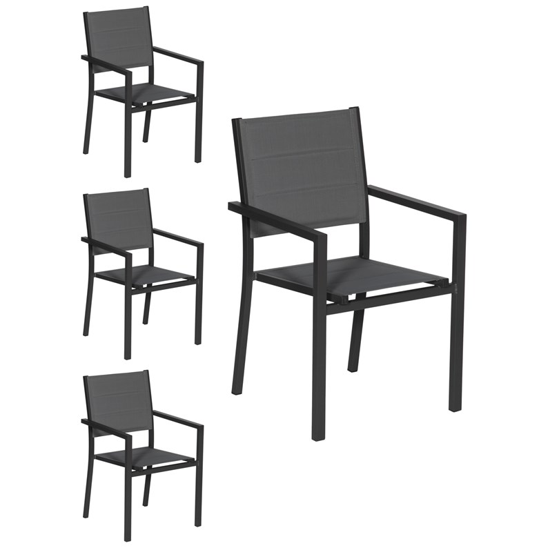 Lot de 4 chaises rembourrées en aluminium anthracite - textilène gris