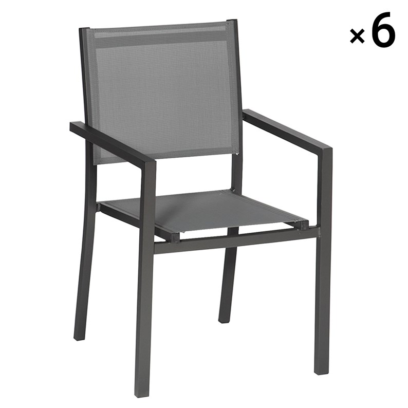 Lot de 6 chaises en aluminium anthracite - textilène gris